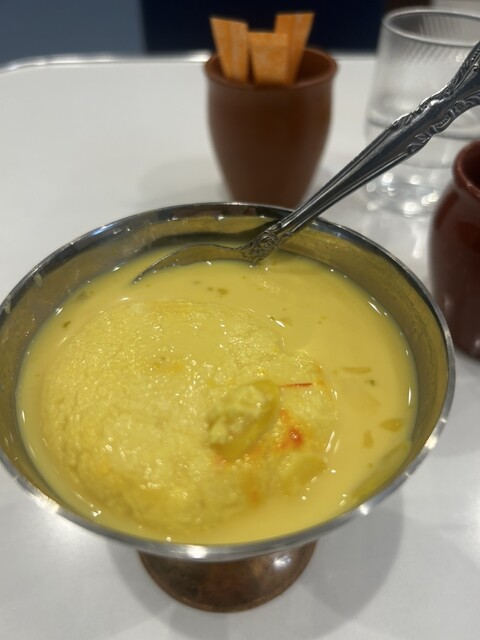 あっというまに両プレート完食してもう無理かなとチャイを飲むうち、なんかまだいけそうじゃない?てことでデザートにはラスマライ。カッテージチーズの平たい塊が少し甘いソースにつかっているおしゃれなデザート。