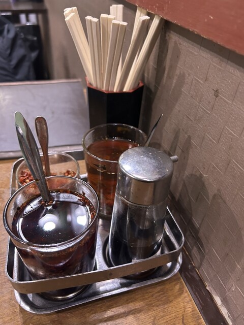 スープはピリ辛?かどうかくらいなので卓上の唐辛子などで辛くできる。麺とセットで高菜の炒め物みたいなのが、お漬物的な感じなのか麺の具としてなのか小皿できた。麺スープも高菜も少し甘味がある。タイのタイ料理屋さんでは卓上調味料に砂糖が定番だが東南アジアの味付けとして甘さを加えるのは定番なのかな。レモンかかって茶葉のサラダはさわやか。