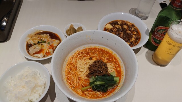 土曜日のランチをCOREDO室町の四川飯店で。安定の麻婆豆腐、ほんと美味しい✨。ランチの名物セットで担々麺もワンタンも。青島ビールでひと足早く梅雨の暑気払いさせていただきました。満腹大満足✨陳建一さん、ありがとう✨