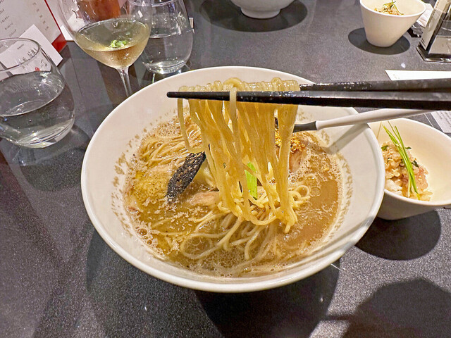そこに飯田商店仕込みの黒さつま鶏「黒王」の清湯スープの旨みが広がりを加えています。