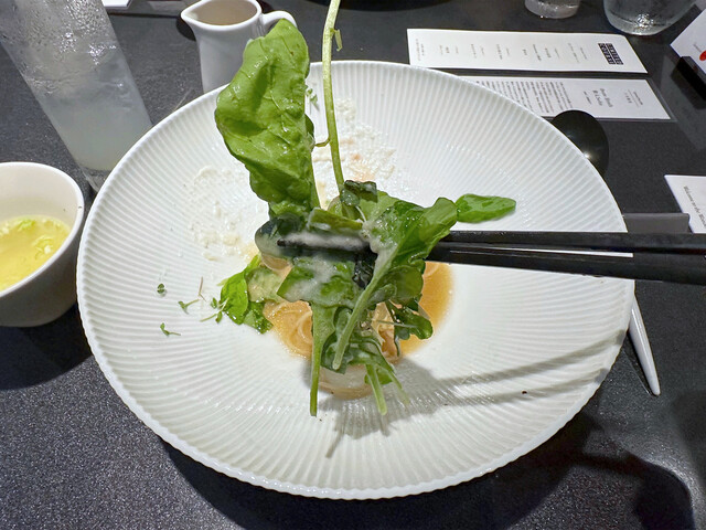 香ばしく焼かれたチュイールに九条ネギの風味がとても良いです。