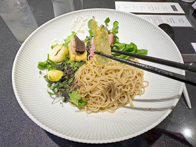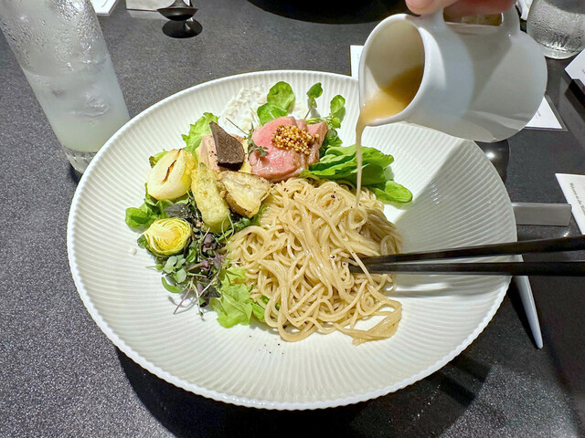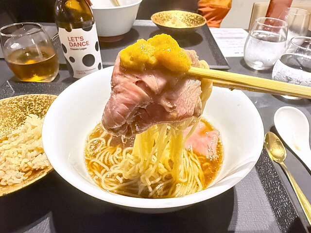 麺と和牛のローストビーフの旨さが見事に調和しています。