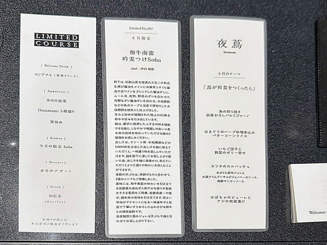 「Japanese Soba Noodles 蔦」さんの会員制「夜蔦」の、10月の限定ラーメン 「醤油らぁめん2022-2025」のLimited Courseでしたが、どれも素晴らしい一品でした。