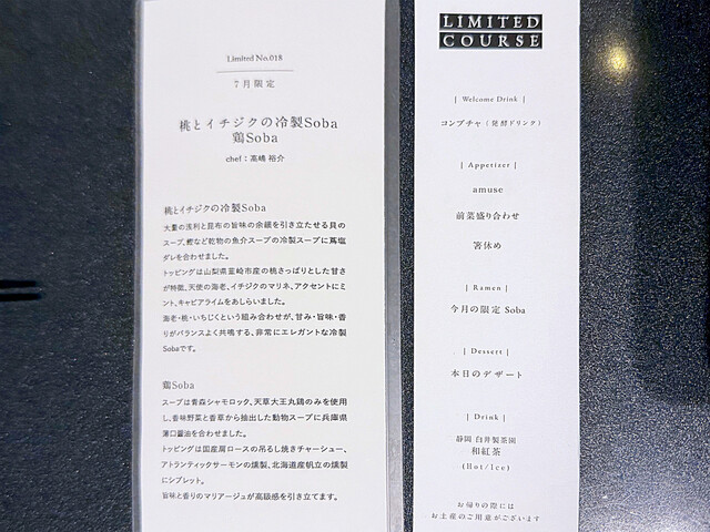 Japanese Soba Noodles蔦の会員制「夜蔦」の10月の限定ラーメン 「醤油らぁめん2022-2025」のLimited Course