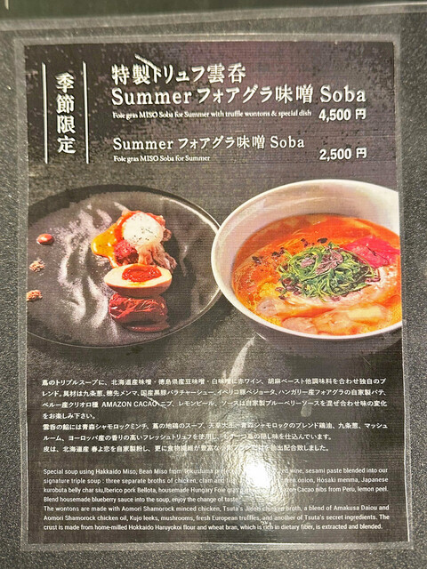 「特製トリュフ雲呑 Summerフォアグラ味噌 Soba」