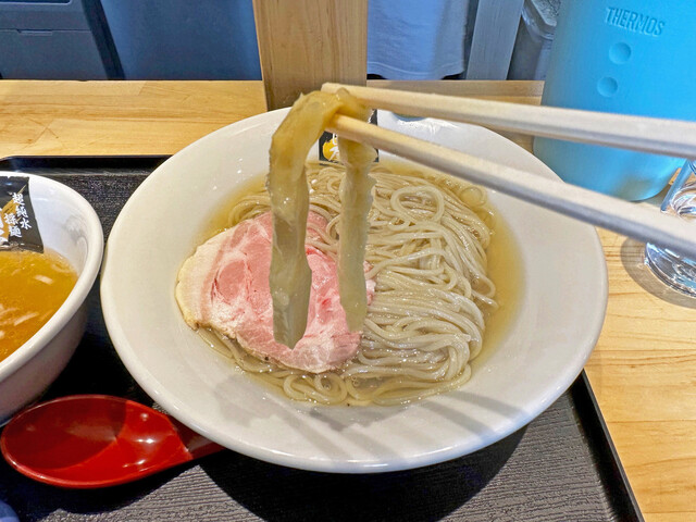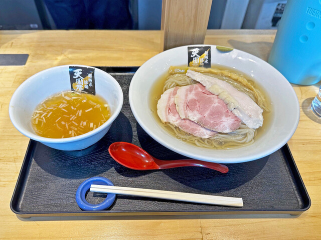 超純水採麺 天国屋の限定「浅利しじみ昆布水の鮮魚白醤油つけそば」