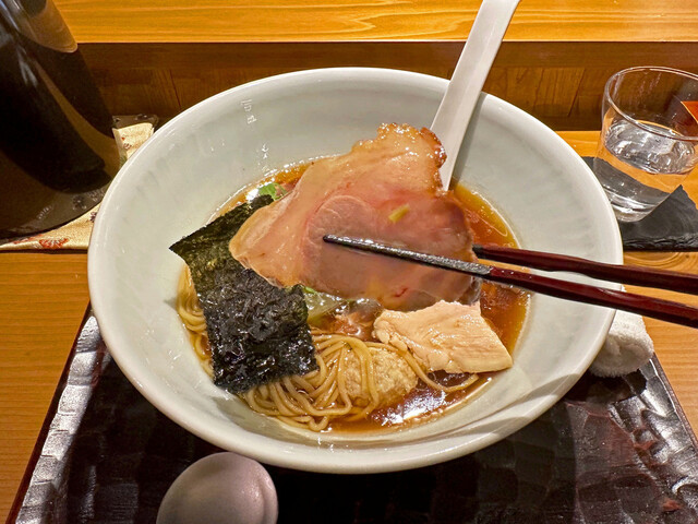 「醤油そば」の方は「紫 くろ㐂」を彷彿とさせる一杯で、より洗練度と全体としての一体感が増している感じがします。