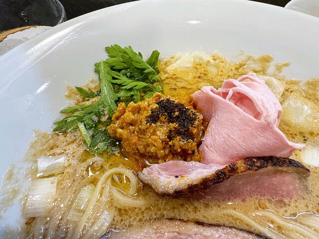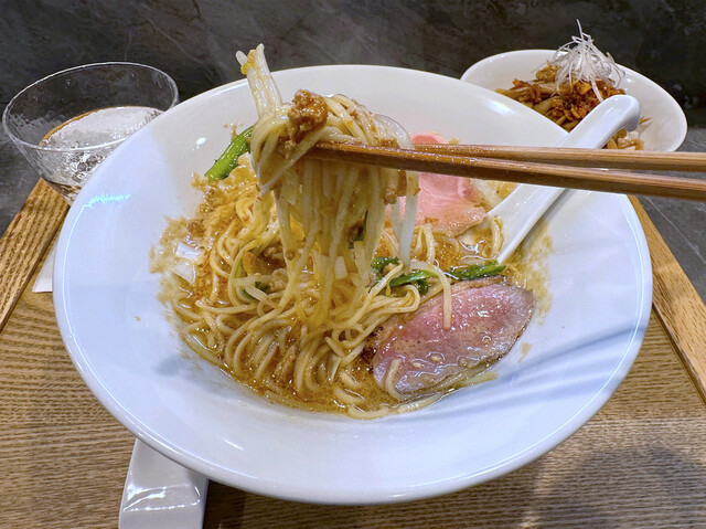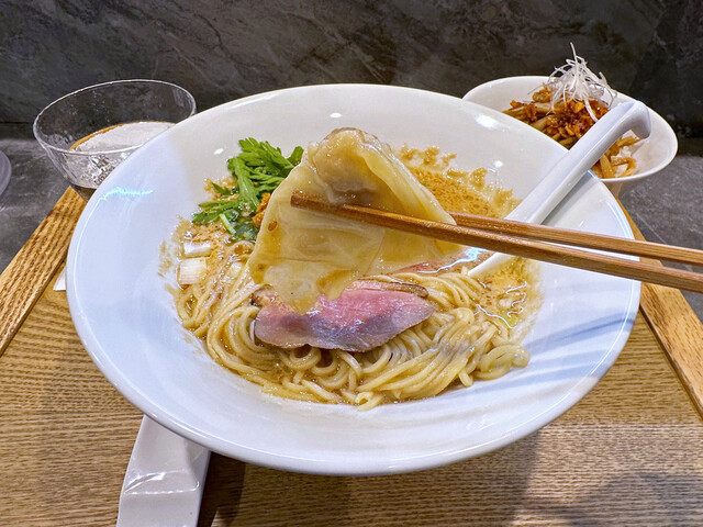 京都「麺屋棣鄂」製の、しなやかで滑らかな食感の麺とのマッチングも素晴らしいです。