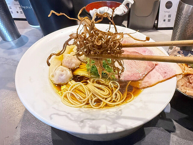 「やまゆり豚の低温スモークチャーシュー」と「国産豚肩ロース低温煮込み焼豚」、ワンタンなどの具材も、最新のトレンドと繊細な技術でとても美味しいです。