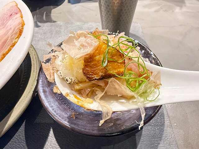 限定ご飯の「やまゆりポーク」の「炙りチャーシューご飯」の旨さも特筆モノで、炙った二種のチャーシューと鰹節、そしてタレがご飯と相まって激ウマな一杯でした。