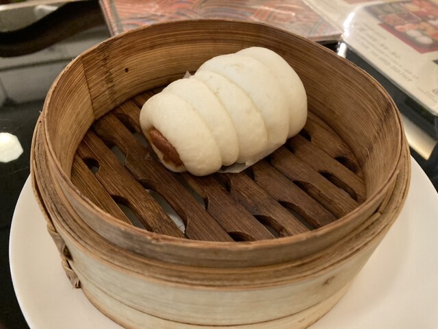 肉饅頭の肉のサラミのような深みがジューシーでたまらん。