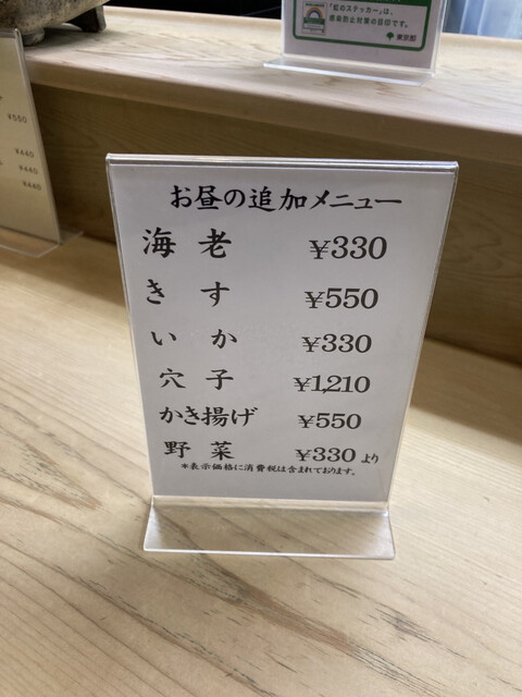 天ぷらのネタは野菜も入っているので、江戸前とは言い難いが、