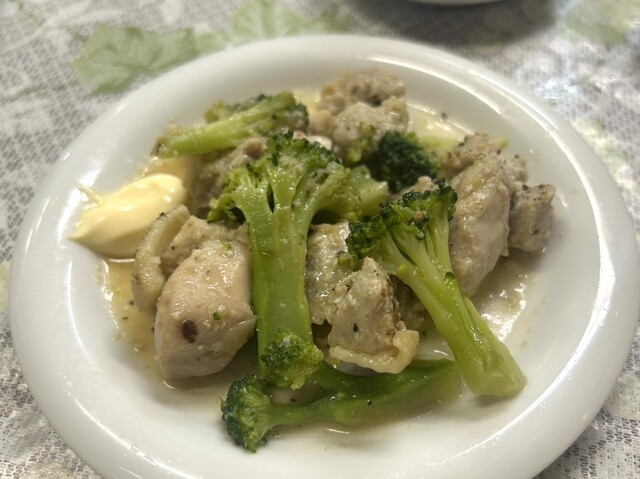 こちらは日替わりメニュー。マヨネーズが添えてあって、旨味調味料しっかりな味付けだけど、それが脳に刺さるようなたまらないウマさなんだよねえ〜。