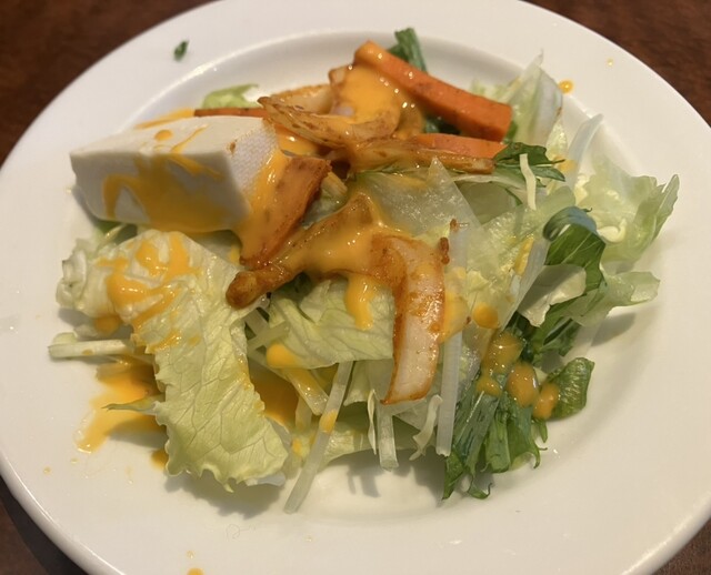 物価高騰で、サービス野菜は50円になりましたが、餃子ライスにスープはサービスありがたい。