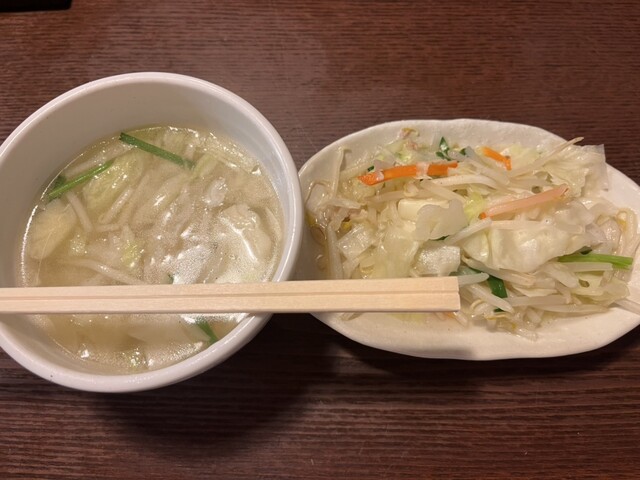 物価高騰で、サービス野菜は50円になりましたが、餃子ライスにスープはサービスありがたい。