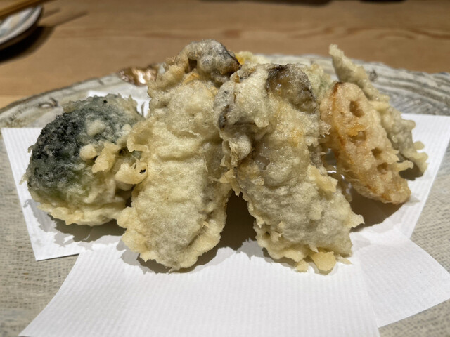 牡蠣の天ぷら、穴子の天ぷらはネタのほっくり感や