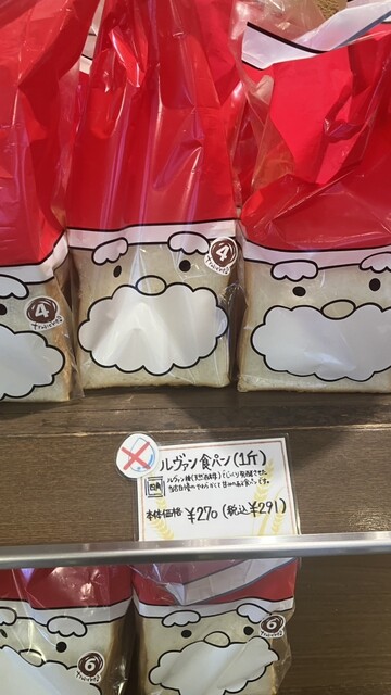 食パンが、クリスマスのラッピングになっていました(^^) ルヴァン食パンは四角型のパンで、