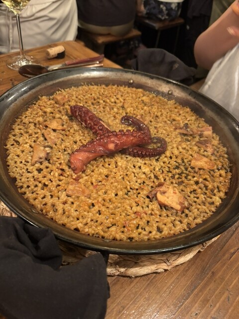 ボトルワイン1本、グラスワイン1杯ずつ、メインのお肉、パエリア、他に3品頼んで2人で26000円ほど。