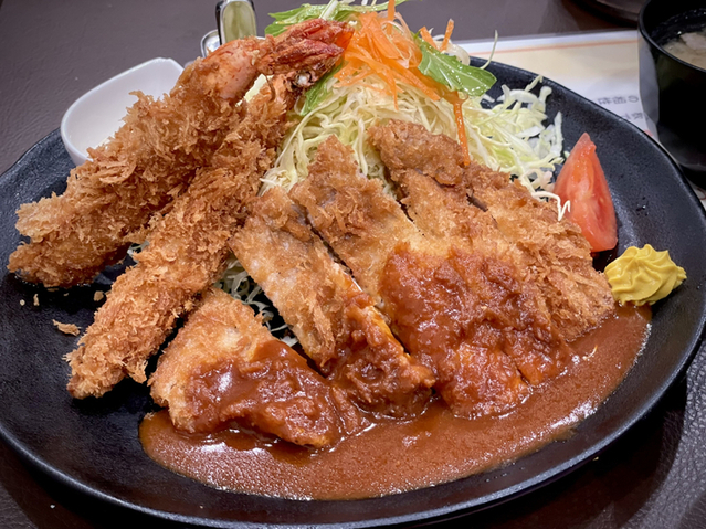 欲を言えば、ヒレカツ+ハンバーグ+エビフライ1匹+クリームコロッケ1個の定食が有れば言うことなしです。