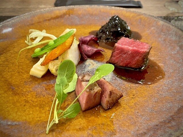 野菜、肉、海鮮、スープ、デザート、どれも最高です。視覚、味覚、嗅覚で楽しめる料理でした。