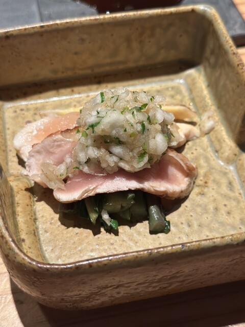 ⭐︎ムネのタタキ 山形地鶏 ほろほろ鳥 玉ねぎソース 小松菜