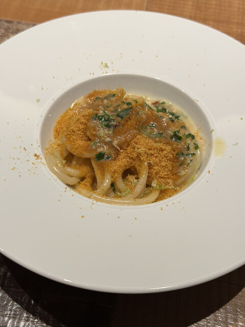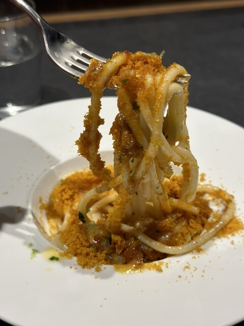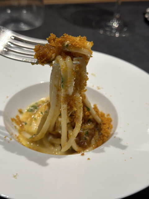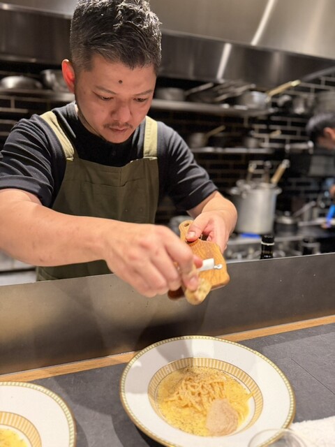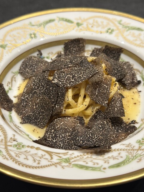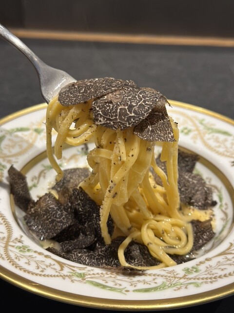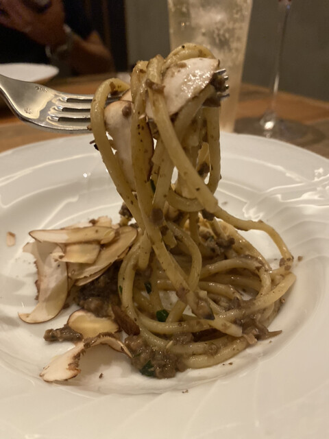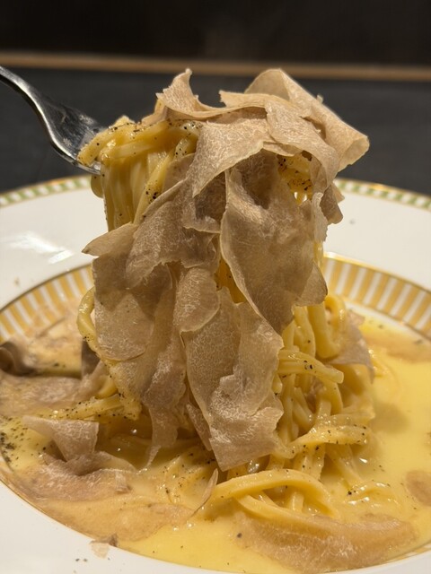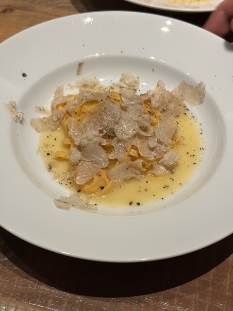 麺、ソースのバランスが最高で白トリュフもたっぷりかけてもらい…香りに味に最高潮。