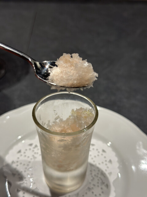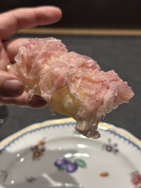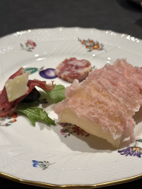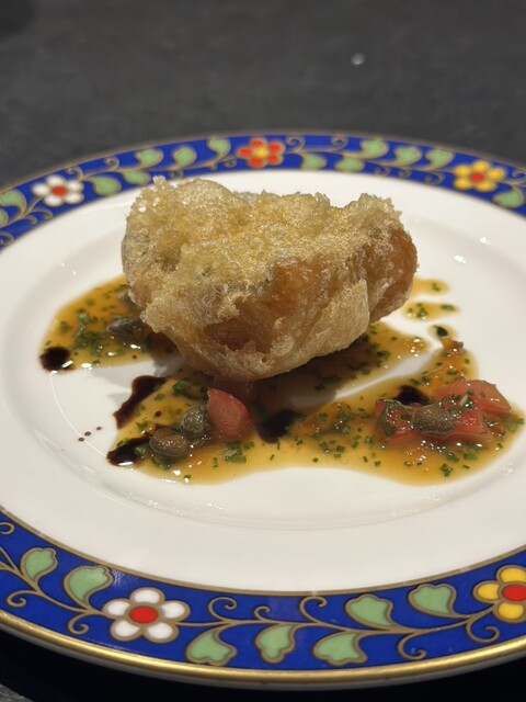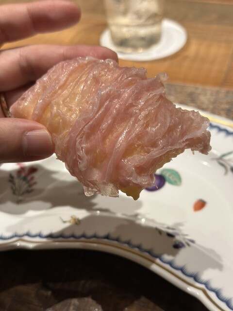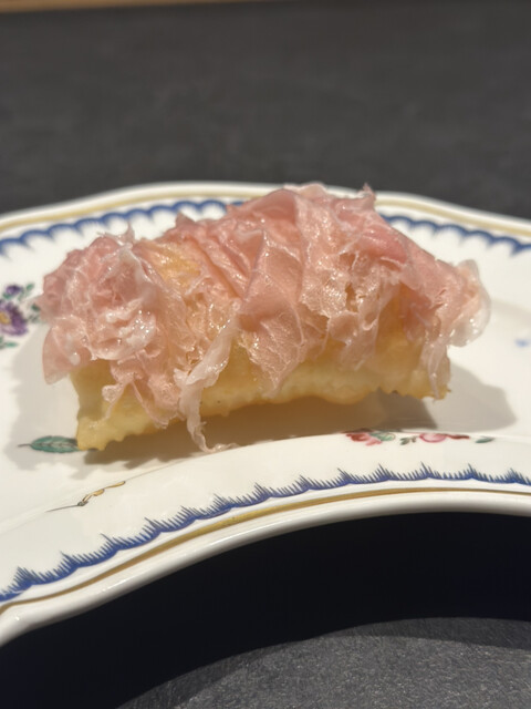 看板的な生ハムのニョッコフリットは重量に反して全く重さを感じず、パリッと食感と共に口に広がる生ハムの塩気とニョッコフリットの甘味…とろける美味さ。
