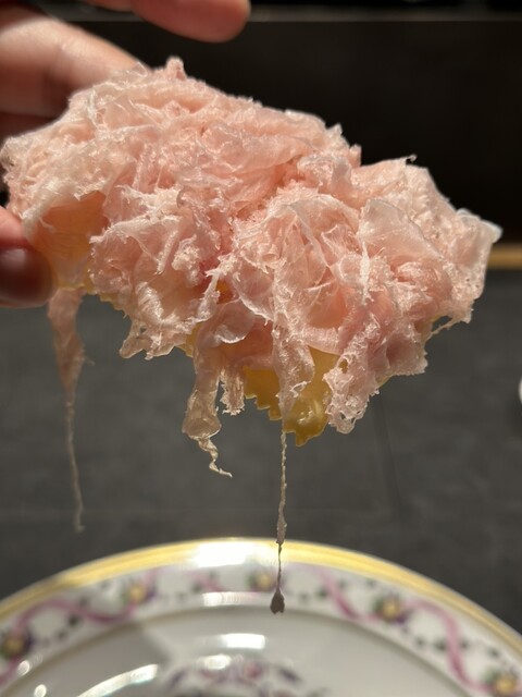 桜海老とバフンウニの冷製パスタにスペシャリテの生ハムのニョッコフリットも食べたくて頼んで、もちろん満足。