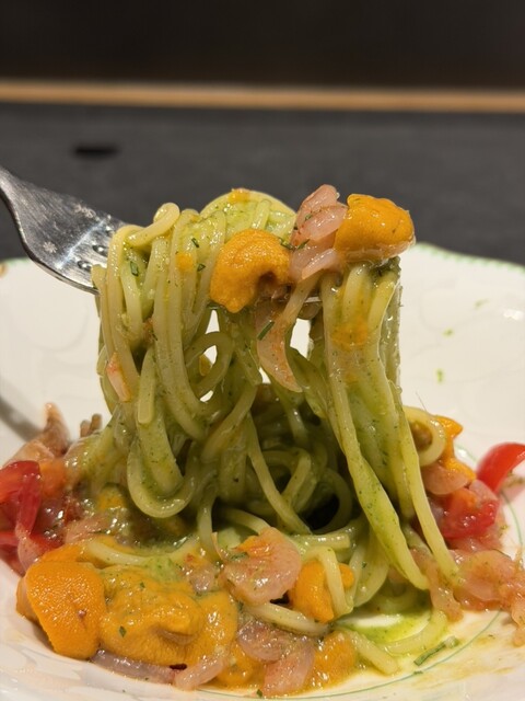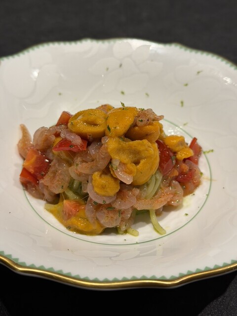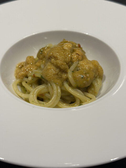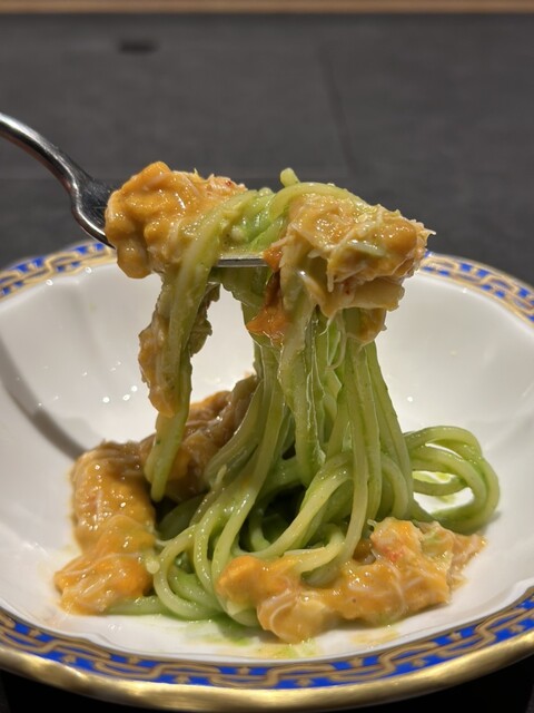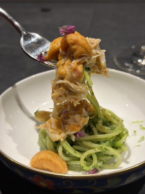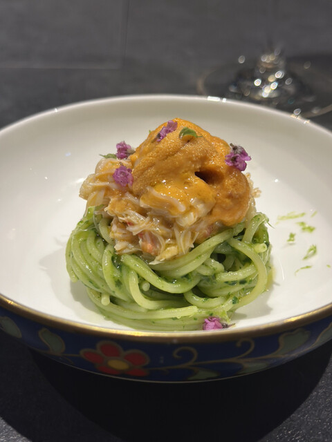 雲丹と毛蟹の冷製パスタも贅沢すぎる一品。