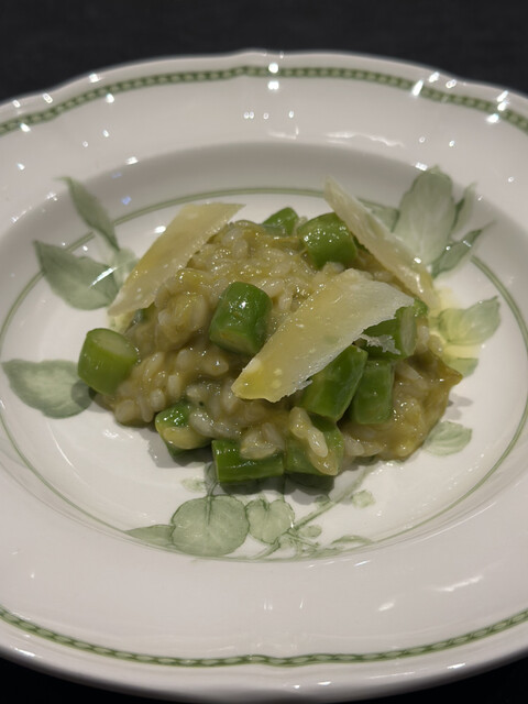 雲丹の冷製パスタなどどれも美味しかったけど、個人的にこの日はグリーンアスパラのリゾットがストライクだった。