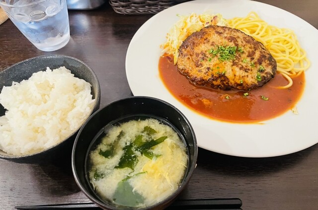 まわりはカリっと焼いてあり中は少し柔らかいハンバーグ美味しかったです