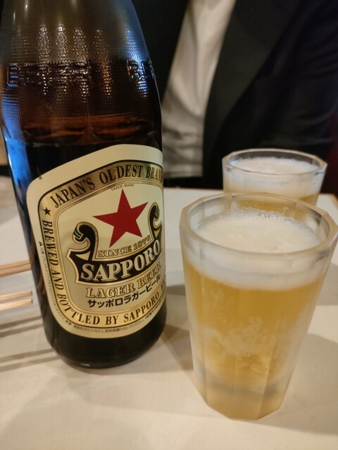 瓶ビールはアサヒもあるけど、サッポロの赤星ってやつもある。友人はこれが好きで「赤星の瓶ビールがある店は美味い」とのこと。