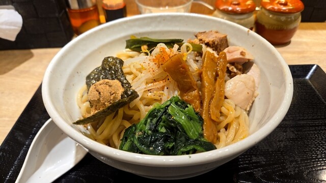 グリーンカレーつけ麺が本命だったが売り切れの為にんにくつけ麺を注文。