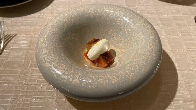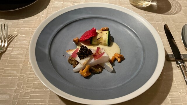 アオリイカのア・ラ・ブランシャ 茄子とゴールドキャビア、