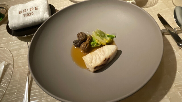 尾長鯛のロースト キャベツのエチュべとモリーユ茸
