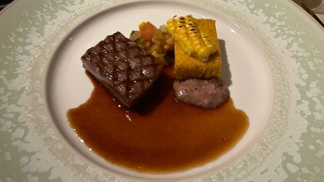 神戸牛のグリル 香ばしく焼いたボレンタ エシャロットコンフィ