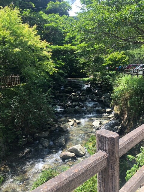 青々とした木々に囲まれて、川が流れ、自然が美しい〜!川には鯉も泳いでいて、気分もリフレッシュできました。