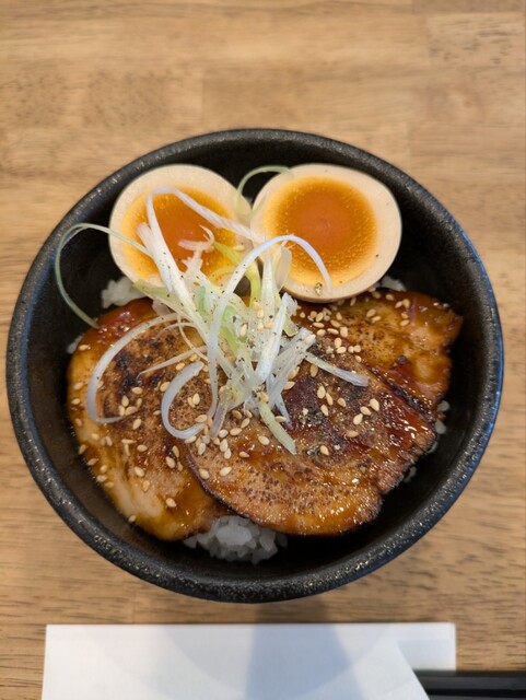 というところで炙りチャーシュー丼の存在を思い出しました。ラーメンに夢中で食べるのを失念していましたが、一口食べたらこちらも絶品。クドすぎない甘めのタレがかかった王道チャーシュー丼です。