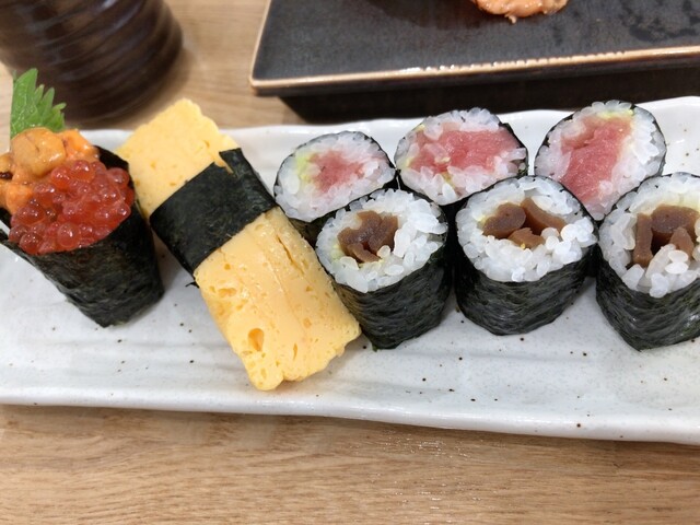 帆立やエビ、サーモンもバーナーで炙ってくれるなんてすご!ウニ&いくら軍艦もあり!