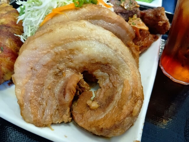 豚唐揚げは、ほんのりスパイシーで肉はやわらかかったです