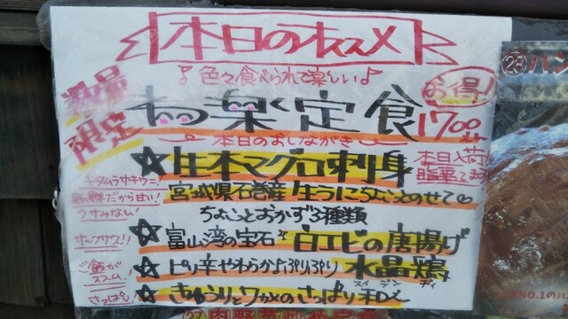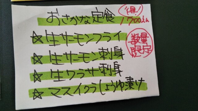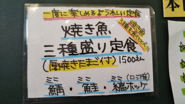 15日の海の日スペシャルメニューは、市場が休みのため、焼き、揚げ、生(少々)で提供するらしいです