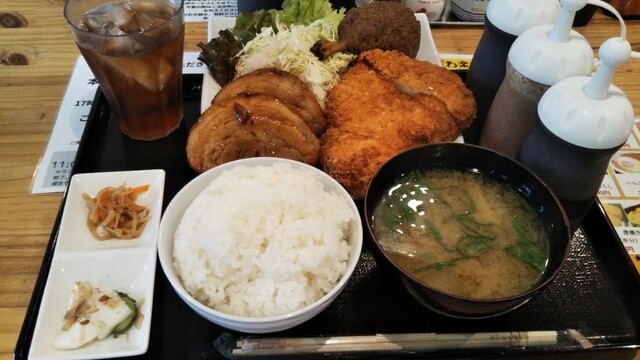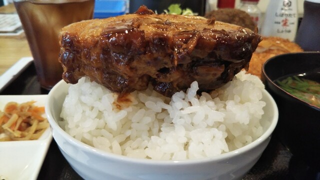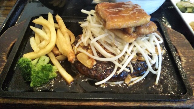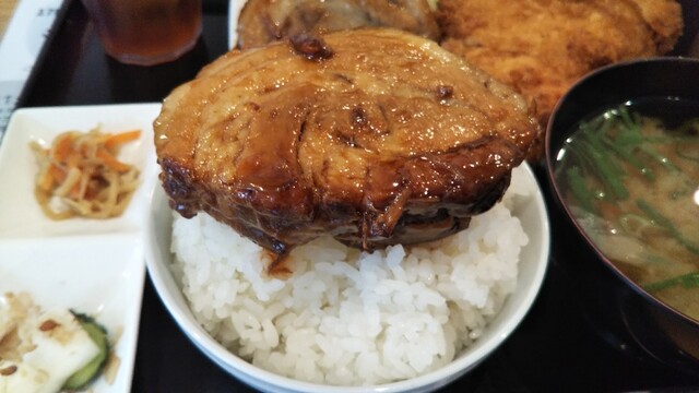 ☆豚バラにんにく焼き on the ガーリックソースハンバーグ定食