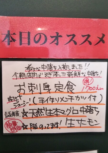 その時、メニューを確認して「生本マグロ刺身と大きなチキン南蛮」を確認していました