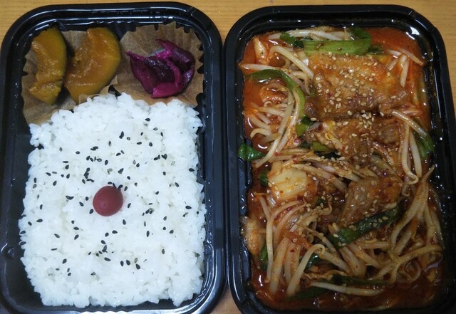 A豚キムチB鶏の唐揚げC厚焼き玉子