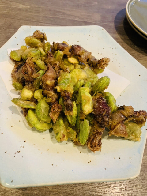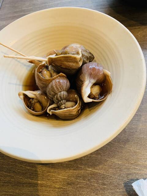 お通し 空豆の豆腐 つぶ貝の旨煮