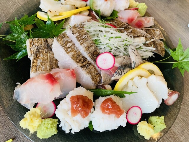 お刺身盛り合わせにはこの時期ならではの鱧が入っていて嬉しいです♪
