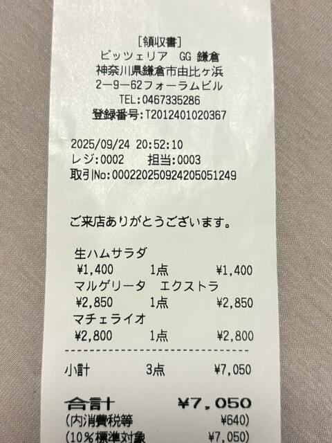 生地も味も美味しいなぁ、GGのピザは。