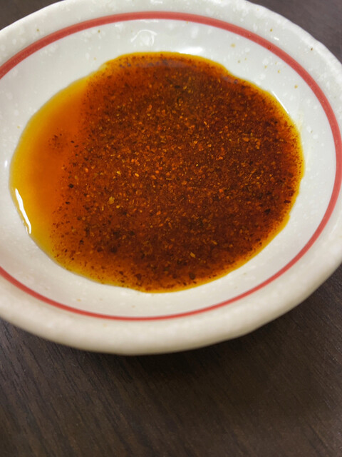 焼き餃子用に作成した餃子のタレwith濃いラー油を少し掛けて…