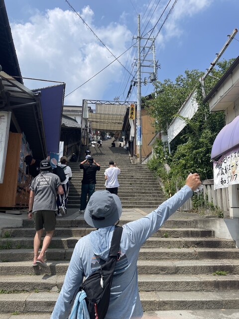 そんな朝から暑い中、せっかく来たのだから…と金比羅山へ気が遠くなるような階段を登り、参拝。