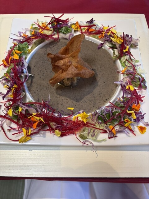 庭付き京町家一棟で営む本格派フレンチのお店。前菜、フォアグラ、トリフの冷製ポタージュ、活けオマール海老を使った定番料理、箸休めからのメインお肉、冷製鯛の昆布締め出汁茶漬け、オリジナルの焼きプリンとドルチェ全てが新鮮で美味しい。ワインも好みを言ってチョイスしていただきました。また行きたいと思います。